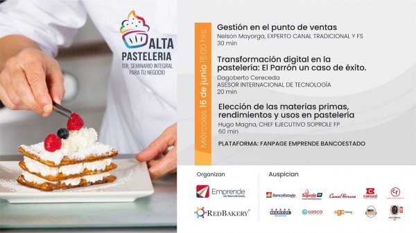 La Oficina de Fomento Productivo informa de una atractiva oportunidad para la comunidad gracias a la "Academia Emprende Banco Estado" que desarrollará un seminario de alta pastelería, el miércoles 16 de junio, a las 15 horas, a través de la fan page @EmprendeBancoEstado