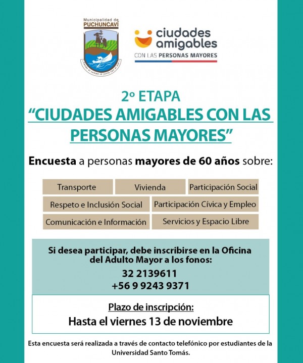 “Invitamos a todos los adultos mayores que viven en nuestra comuna a inscribirse y participar de esta encuesta, es una instancia importante que va a permitir hacer un diagnóstico y conocer de voces de ellos mismos cuales son las necesidades en materias de infraestructura pública, transporte, seguridad y otras ”