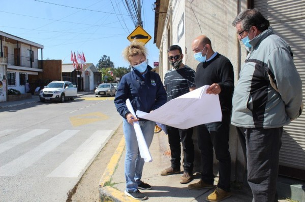 Nuevos trabajos de construcción de veredas, anunció la Alcaldesa Eliana Olmos Solís, en un recorrido por el sector centro de Puchuncaví que realizó esta semana, en el que estuvo acompañado por el Presidente de la Junta de Vecinos del sector, además de profesionales del municipio.