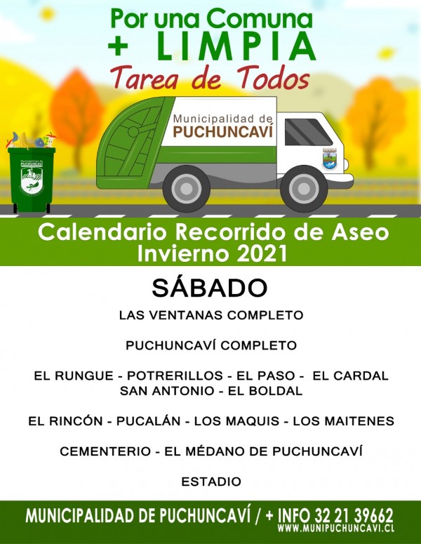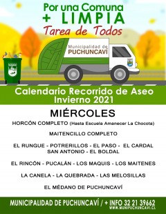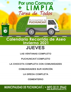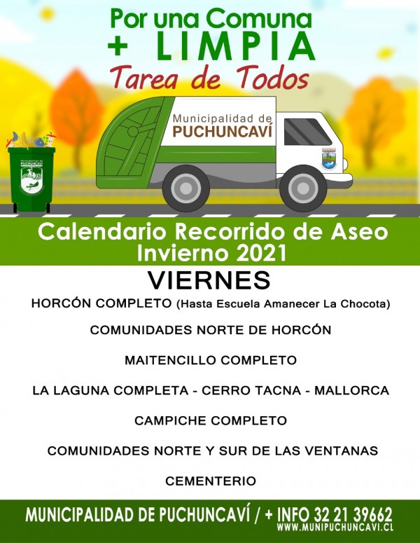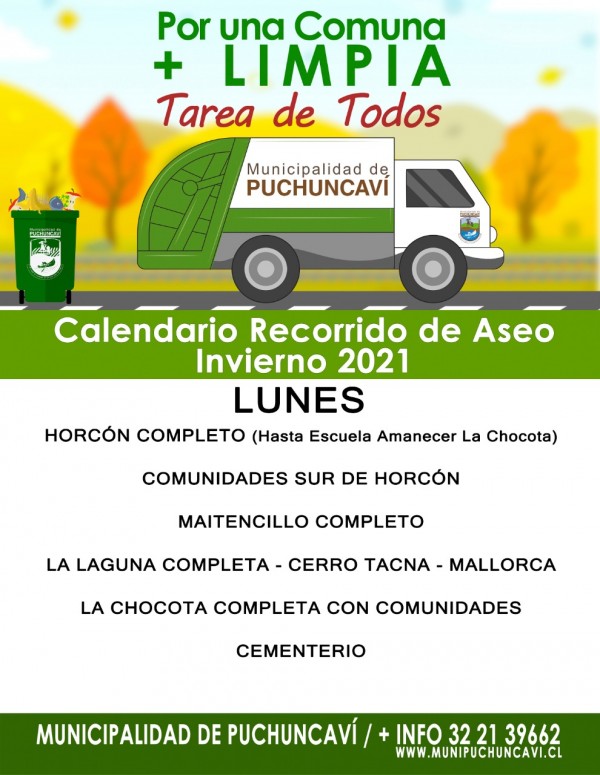 Compartimos con ustedes el calendario de Aseo Domiciliario Invierno 2021.