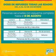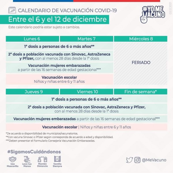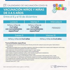 calendarios de vacunación Covid 19 entregados por la Autoridad Sanitaria para