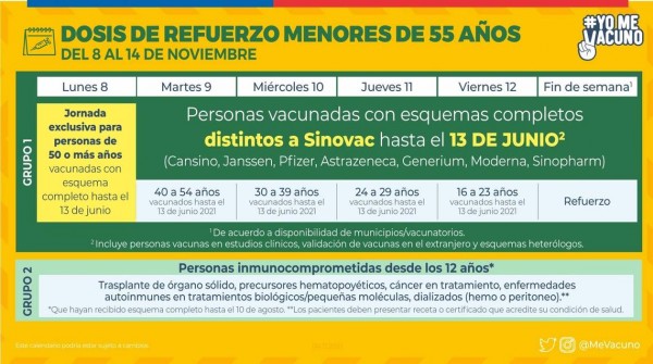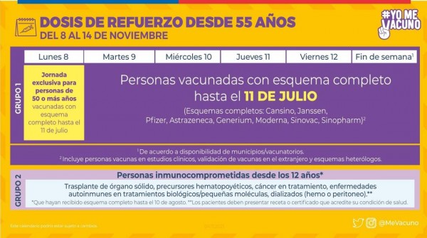 Les mostramos los calendarios de vacunación Covid 19 entregados por el Ministerio de Salud, para la semana del 8 al 12 de noviembre.