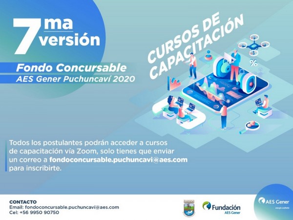 Para inscripciones a las capacitaciones online y consultas, debe escribir al correo fondoconcursable.puchuncavi@aes.com o al fono +56995090750