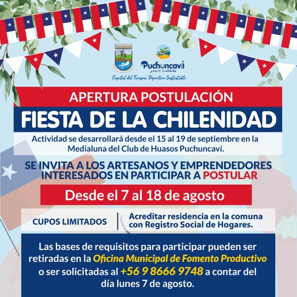 al fono +569 86669748, las postulaciones estarán abiertas desde hoy lunes 7 y