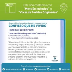 El Servicio Nacional del Adulto Mayor, SENAMA, invita a la comunidad desde los 60 años y más, a participar de la séptima versión del Concurso Literario Autobiográfico para Personas Mayores "Confieso que he vivido".