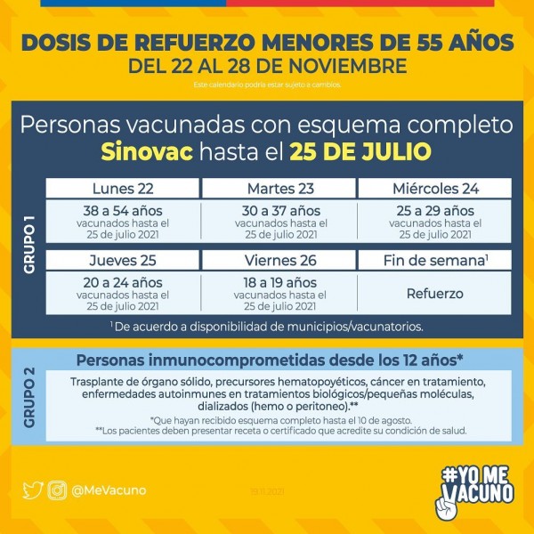 vacunación Covid 19 que entrega el Ministerio de Salud, correspondientes a la semana