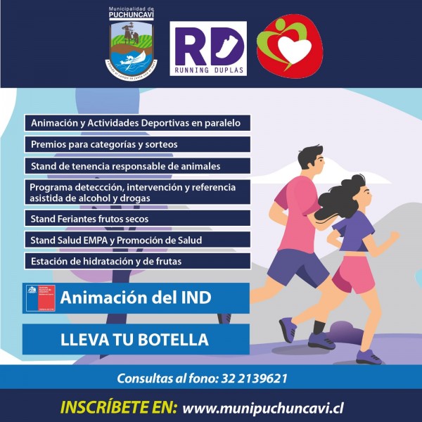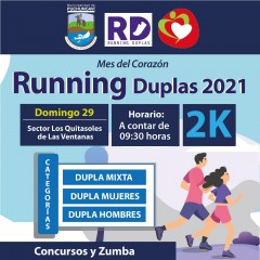 Ven y participa de nuestra Corrida Duplas 2021, la que se llevará a cabo en la Costanera de Las Ventanas, este domingo 29 de agosto, a partir de las 9:30 horas.