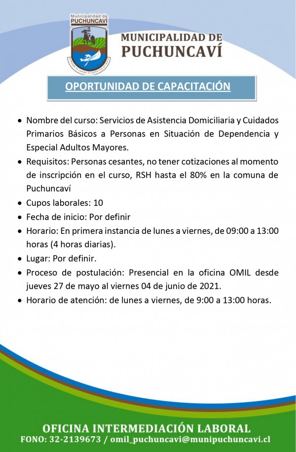 Más informaciones en imagen adjunta o comunicándose al fono 322139673 de la Oficina de Intermediación Laboral.