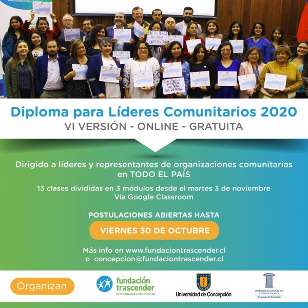 Fundación Trascender invita a aquellos dirigentes que quieran participar en un Diplomado para líderes comunitarios, a postular a través del link