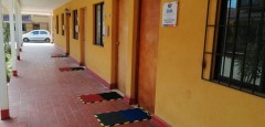 se dispondrá además de toldos en el patio delantero y trasero para la espera, y