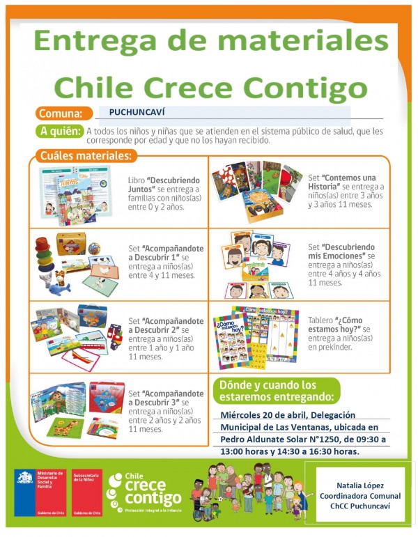 Un nuevo llamado a la comunidad realiza la Oficina Chile Crece Contigo, para hacer retiro de los Materiales de Estimulación que entrega el programa, a niños y niñas entre 0 y 4 años 11 meses, que se encuentren inscritos en los Centros de Salud Familiar de la comuna.