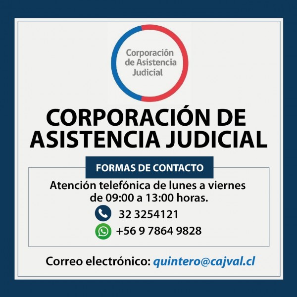 Informamos a la comunidad sobre las formas de comunicación con que cuenta la Corporación de Asistencia Judicial, cuya misión es proporcionar orientación y asesoría jurídica a todas las personas que así lo requieran, y patrocinar judicialmente de manera profesional y gratuita a quienes no cuenten con los recursos para hacerlo.