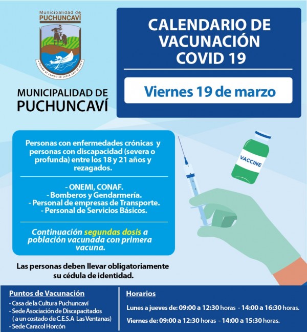 Por tanto, mañana, en nuestra comuna de Puchuncaví, es el turno de entre 18 a 21 años de edad con enfermedades crónicas o con alguna discapacidad.
