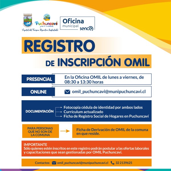 comuna a que se inscriban en el Registro de OMIL Puchuncaví, para que puedan