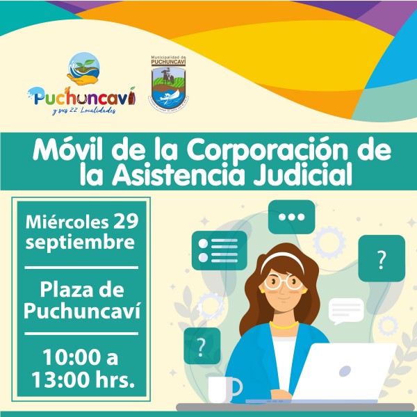 Informamos que mañana miércoles 29 de septiembre, atenderá en la Plaza de Puchuncaví, el móvil de la Corporación de Asistencia Judicial, de 10 a 13 horas.