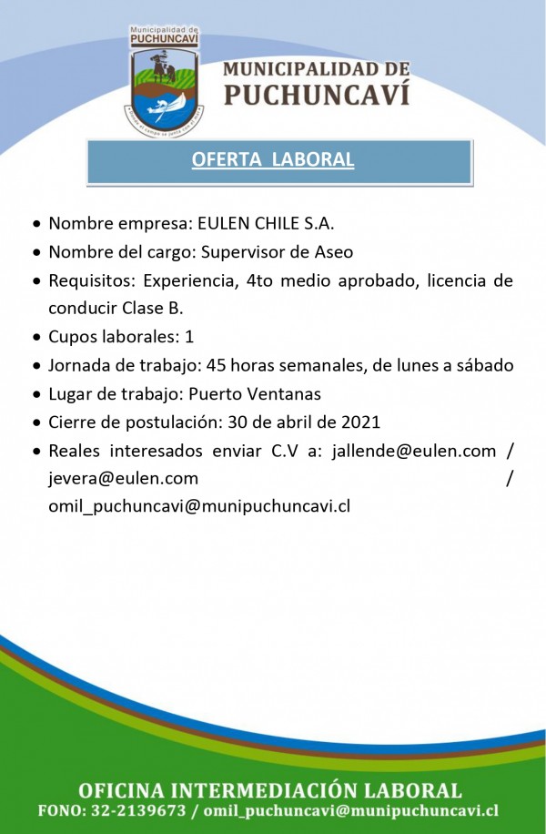 OFERTA LABORAL: SUPERVISOR DE ASEO