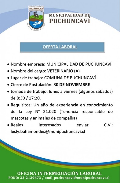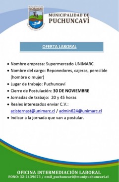 En esta ocasión se requiere de veterinario/a y de reponedores y cajeros. Mayores informaciones en imágenes adjuntas. Y les recordamos que el plazo para postular a estas vacantes es el 30 de noviembre.