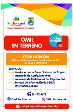 Continuando con el programa OMIL en Terreno, les contamos que esta semana se trasladarán a distintas ferias de la comuna para apoyar a la comunidad en la Inscripción en la Bolsa Nacional de Empleo, imprimiendo currículum y certificados del registro civil, entregando información de SENCE y orientación laboral.
