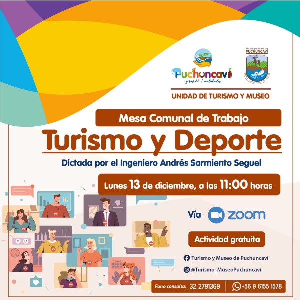 Los invitamos a continuar participando de nuestras mesas de trabajo de “Turismo y Deporte”, esta vez, a nivel comunal, en las que buscamos potenciar esta importante área para así fomentar el crecimiento de nuestro territorio.