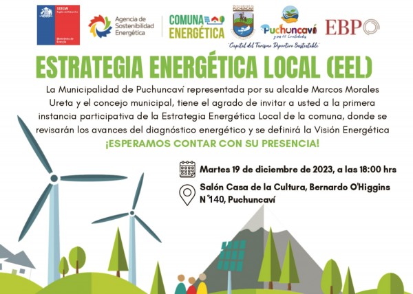 El Ministerio de Energía, la Agencia de Sostenibilidad Energética y la Municipalidad de Puchuncaví te invitan a ser parte de la primera jornada de participación ciudadana para construir entre todos la Estrategia Energética local de la comuna de Puchuncaví.