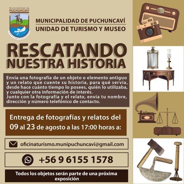 Queremos invitarlos a ser parte de “Rescatando Nuestra Historia”, una actividad organizada por nuestro Museo de Historia Natural, en la que le invitamos a enviarnos una fotografía de cualquier objeto antiguo que tenga en su casa, a la cual debe adjuntar un relato con detalles como, hace cuánto tiempo lo tiene, quién lo utilizaba, cómo llegó a su hogar, y cualquier información interesante que nos ayude a reconstruir su historia.