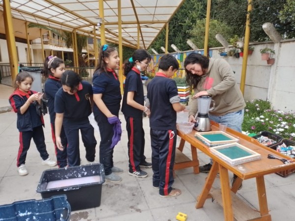 la Brigada Ecológica del establecimiento estuvimos elaborando papel reciclado,