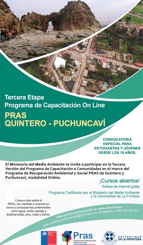 Para consultas puede llamar al fono +569 33423582 o escribir al correo pras.quintero@puchuncavi@ufrontera.cl