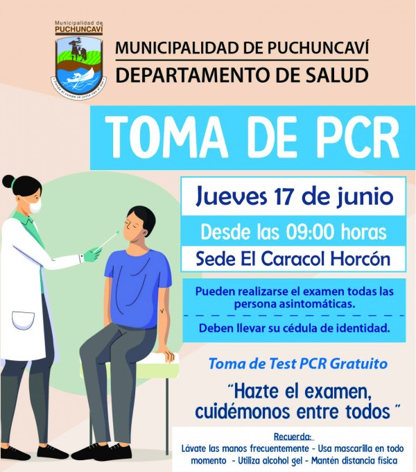 Este jueves 17 de junio, el Departamento de Salud Municipal desarrollará un nuevo operativo de toma de muestras PCR en la Sede El Caracol de Horcón, a partir de las 09:00 horas.