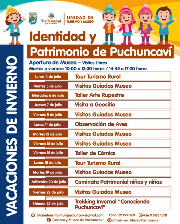 Ya comienzan las vacaciones de invierno, y nuestra Unidad de Turismo y Museo, ha preparado unas entretenidas actividades que
