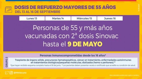 Se adjuntan además calendarios de Minsal con la información de los grupos objetivos a quienes se vacunará en dicha semana.