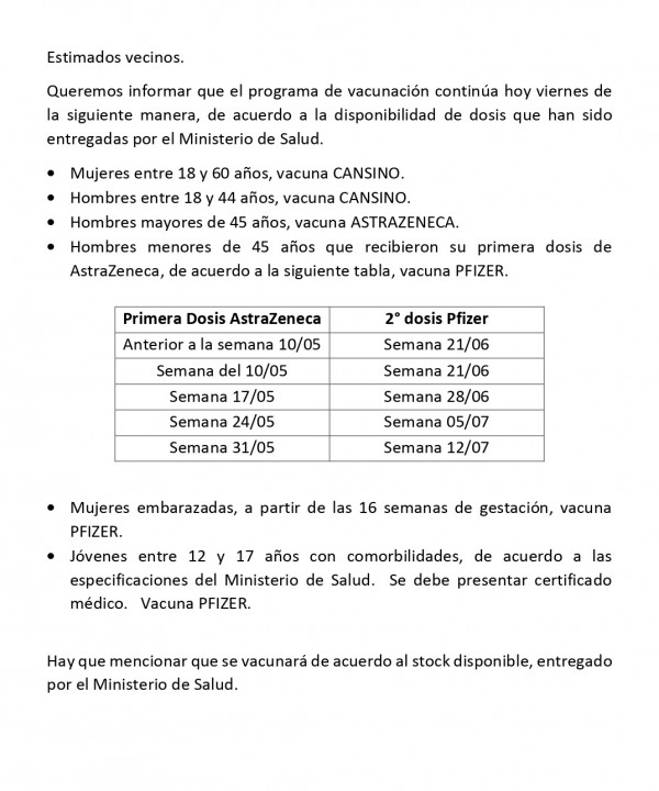 VACUNACIÓN COVID VIERNES 25 DE JUNIO