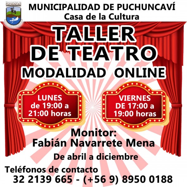 Para participar sólo debe llamar al fono de la Casa de la Cultura 322139665 donde le entregarán horarios y formas de conectarse a las clases o directamente con los monitores a los fonos de contacto que se encuentran en la publicidad de los talleres que puede encontrar por ejemplo en https://www.munipuchuncavi.cl/talleresCulturales.php